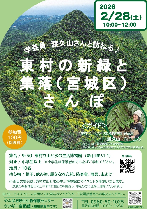 来る2月28日(土)に、イベント「学芸員 渡久山さんと訪ねる♪東村の新緑と集落(宮城区)さんぽ」を開催します!
